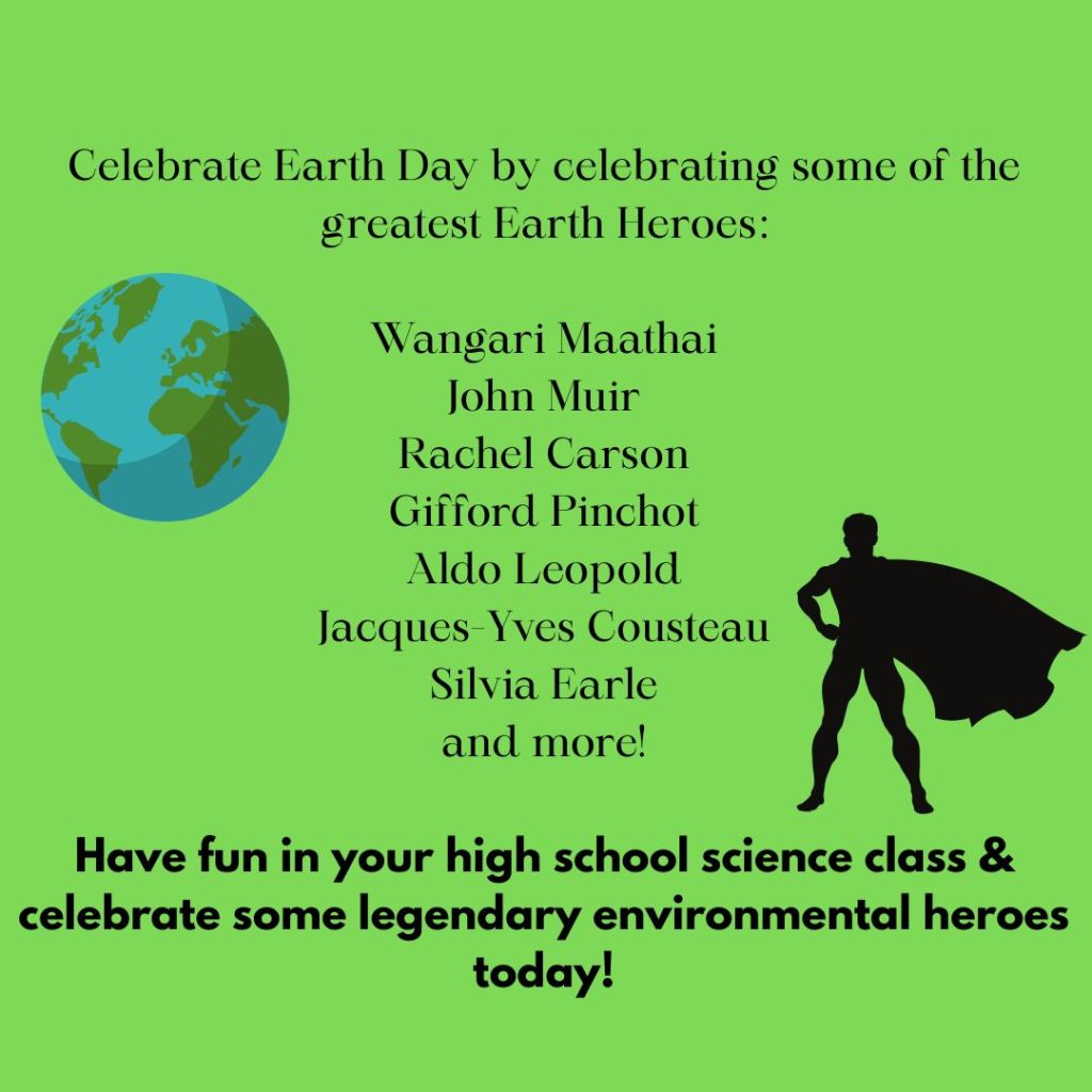 Have you ever visited a National Park? They were originally created through the idea of preserving land for the enjoyment of citizens of our country. Have you ever heard of DDT and its effects on the bald eagle population? The research of early pesticide use and its impacts on the environment were made public by Rachel Carson’s work when writing her infamous book, “Silent Spring.” While there are so many AMAZING environmental heroes we can learn from, we have limited time in our classroom to really learn about these heroes. We don’t have time for our students to fully learn the depth of these great environmentalists, but we can at least take a few class periods to really set the stage and motivate our students to learn from the unsung heroes of environmental history.